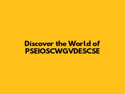 Discover The World Of PSEIOSCWGVDESCSE