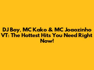 Hey guys! Ever find yourself stuck in a music rut, listening to the same old tracks on repeat? Well, get ready to break free because we're diving deep into the electrifying world of DJ Boy, the lyrical prowess of MC Kako, and the infectious beats of MC Joaozinho VT! These artists are not just making music; they're crafting experiences, weaving stories, and setting the dance floors on FIRE! If you’re looking to spice up your playlist with some seriously awesome tunes, you’ve come to the right place.