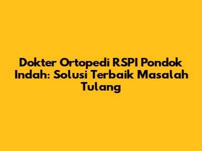 Dokter Ortopedi RSPI Pondok Indah: Solusi Terbaik Masalah Tulang