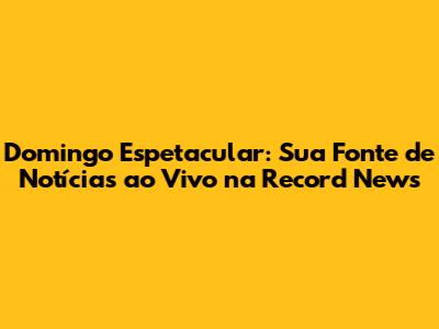 Domingo Espetacular: Record News Ao Vivo E As Últimas Notícias