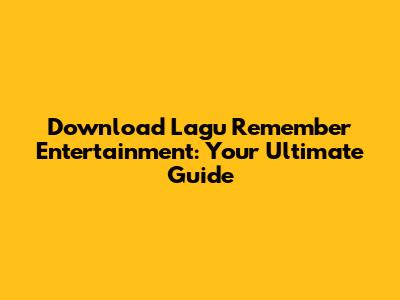 Download Lagu Remember Entertainment: Your Ultimate Guide
