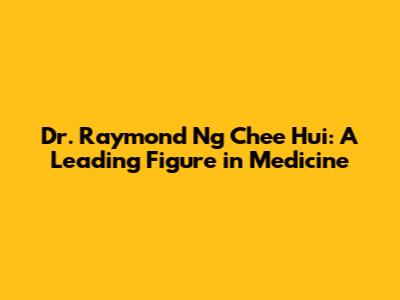 Dr. Raymond Ng Chee Hui: A Leading Figure In Medicine