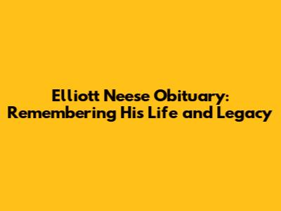 Elliott Neese Obituary: Remembering His Life And Legacy