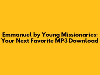 Hey music lovers! Ever stumbled upon a track that just hits different? You know, the kind that gets stuck in your head in the best way possible, making you want to share it with everyone you know? Well, buckle up, because we're diving deep into "Emmanuel" by the Young Missionaries, a song that's been making waves and is now readily available for your MP3 download. This isn't just another tune; it's an experience, a vibe, and potentially your new go-to anthem. Whether you're looking for uplifting vibes, powerful lyrics, or just a seriously catchy melody, "Emmanuel" has got you covered. Stick around as we explore why this track is a must-have in your digital music library and how you can get your hands on that MP3 download to keep the music going, offline and on.