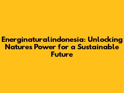 Energi Natural Indonesia: Your Go-To Guide