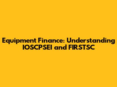 Equipment Finance: Understanding IOSCPSEI And FIRSTSC