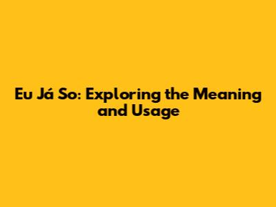 Eu Já So: Exploring The Meaning And Usage