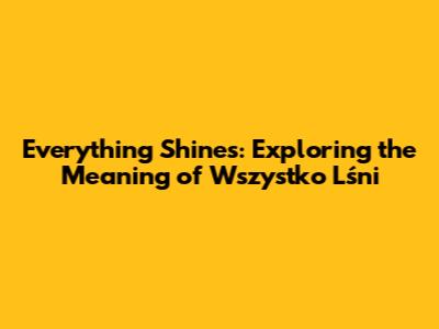 What Does "Wszystko Lśni" Actually Mean?