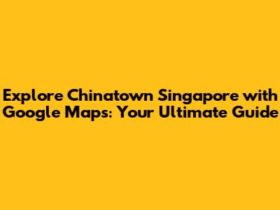 Explore Chinatown Singapore With Google Maps: Your Ultimate Guide