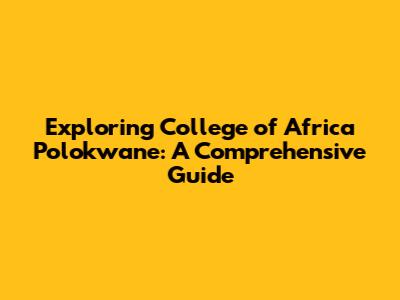 Exploring College Of Africa Polokwane: A Comprehensive Guide