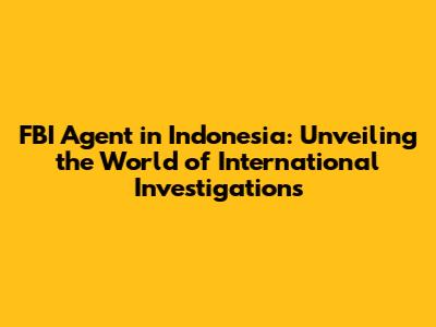 FBI Agent In Indonesia: A Deep Dive