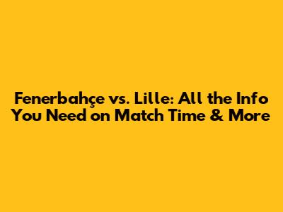 Fenerbahçe Vs. Lille: Match Time & What You Need To Know