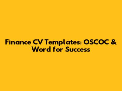 Finance CV Templates: OSCOC & Word For Success