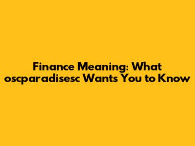 Finance Meaning: What Oscparadisesc Wants You To Know