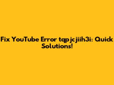 Fix YouTube Error Tqpjcjiih3i: Quick Solutions!