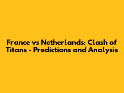 France Vs Netherlands: Who Will Dominate?