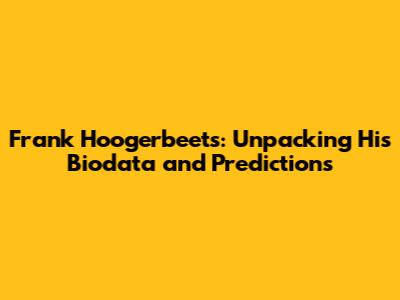 Frank Hoogerbeets: Unpacking His Biodata And Predictions