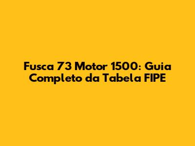 Fusca 73 Motor 1500: Guia Completo Da Tabela FIPE