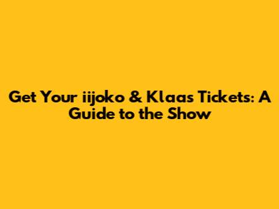 Get Your Iijoko & Klaas Tickets: A Guide To The Show