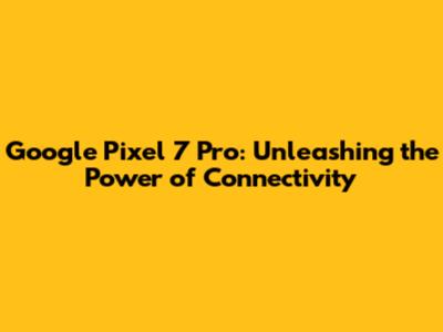 Google Pixel 7 Pro: Unleashing The Power Of Connectivity