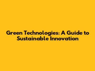 Green Technologies: A Guide To Sustainable Innovation