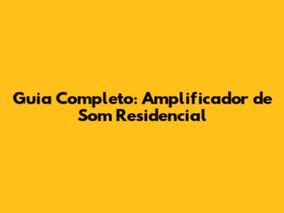 Guia Completo: Amplificador De Som Residencial