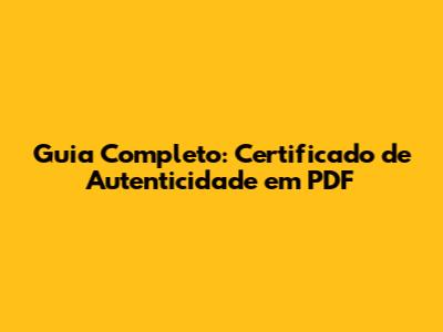 Guia Completo: Certificado De Autenticidade Em PDF