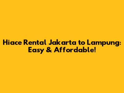 Hiace Rental Jakarta To Lampung: Easy & Affordable!