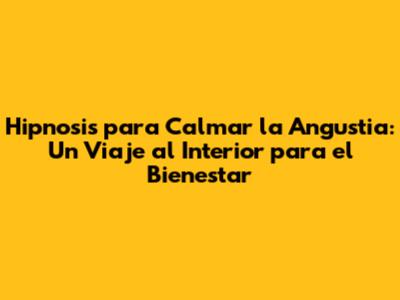 Palabras clave: hipnosis, angustia, calmar, ansiedad, técnicas, terapia, relajación, bienestar emocional, salud mental, manejo del estrés, autohipnosis. ¡Atrévete a explorar el poder de la hipnosis y transforma tu vida!"