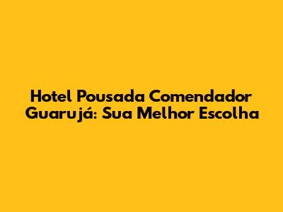Hotel Pousada Comendador Guarujá: Sua Melhor Escolha