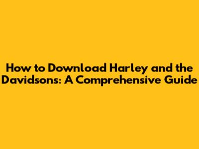 How To Download Harley And The Davidsons: A Comprehensive Guide