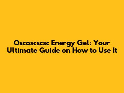 How To Use Oscoscscsc Energy Gel: A Complete Guide