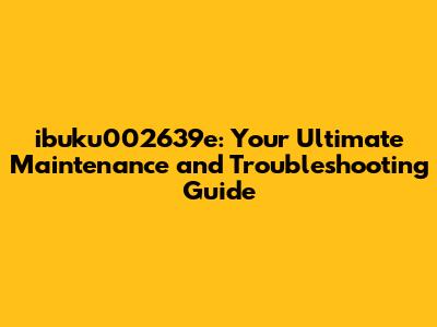 Ibuku002639e: Comprehensive Guide To Maintenance & Troubleshooting