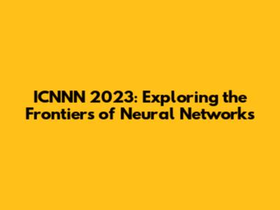 ICNNN 2023: A Deep Dive Into Neural Networks