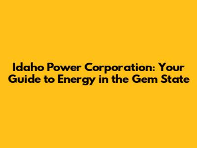 Idaho Power Corporation: Your Guide To Energy In The Gem State