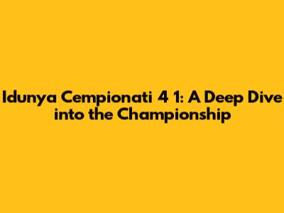 Idunya Cempionati 4 1: A Deep Dive Into The Championship