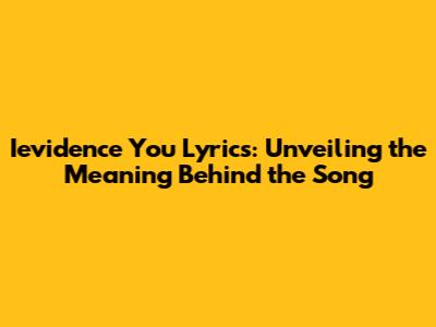 Ievidence You Lyrics: Unveiling The Meaning Behind The Song