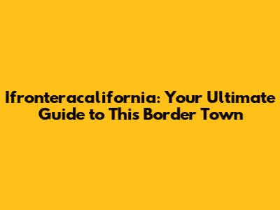 Ifronteracalifornia: What You Need To Know