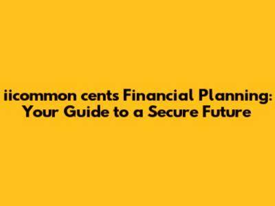 Iicommon Cents Financial Planning: Your Guide To A Secure Future