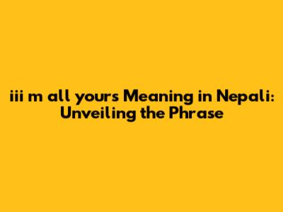 Iii M All Yours Meaning In Nepali: Explained!