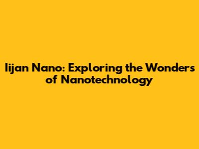 Iijan Nano: Exploring The Wonders Of Nanotechnology