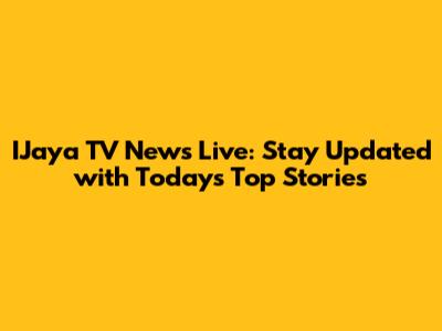IJaya TV News Live: Stay Updated With Today's Top Stories