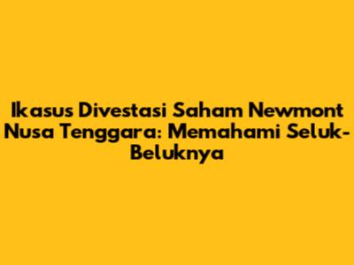 Ikasus divestasi saham Newmont Nusa Tenggara adalah contoh nyata dari dinamika yang kompleks dalam industri pertambangan. Divestasi ini melibatkan banyak pihak dengan kepentingan yang berbeda-beda, mulai dari perusahaan tambang, pemerintah, investor, hingga masyarakat lokal.