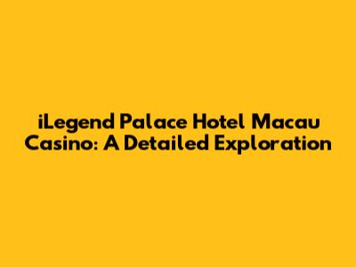 Welcome, fellow travelers and casino enthusiasts! Today, we're diving deep into the opulent world of the iLegend Palace Hotel Macau Casino. This isn't just your average hotel; it's a destination that promises a blend of luxury, entertainment, and high-stakes excitement. Whether you're planning a trip or simply curious about what this iconic establishment has to offer, you're in the right place. Let’s explore everything that makes the iLegend Palace a standout in Macau's vibrant casino scene.