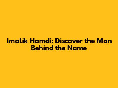 Imalik Hamdi: Discover The Man Behind The Name