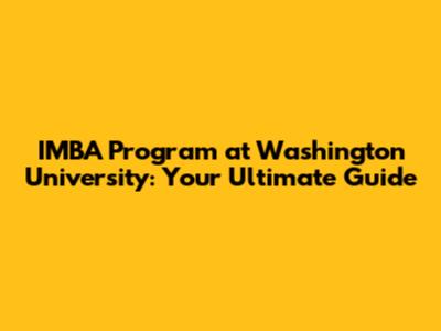IMBA Program At Washington University: Your Ultimate Guide
