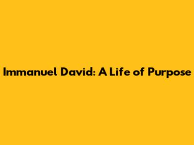 Immanuel David: A Life Of Purpose