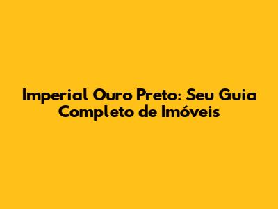 Imperial Ouro Preto: Seu Guia Completo De Imóveis