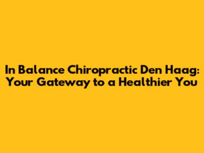 In Balance Chiropractic: Your Path To Wellness In The Hague