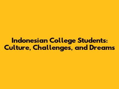 Indonesian College Students: Culture, Challenges, And Dreams